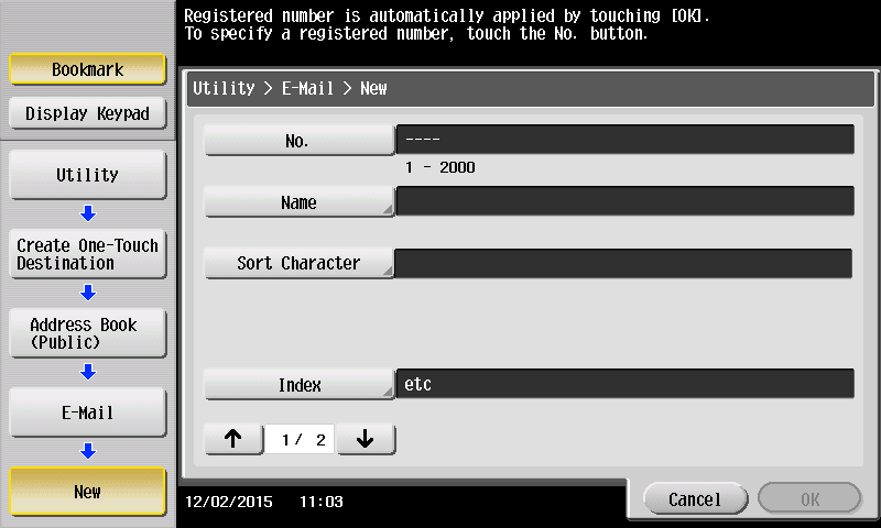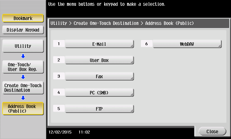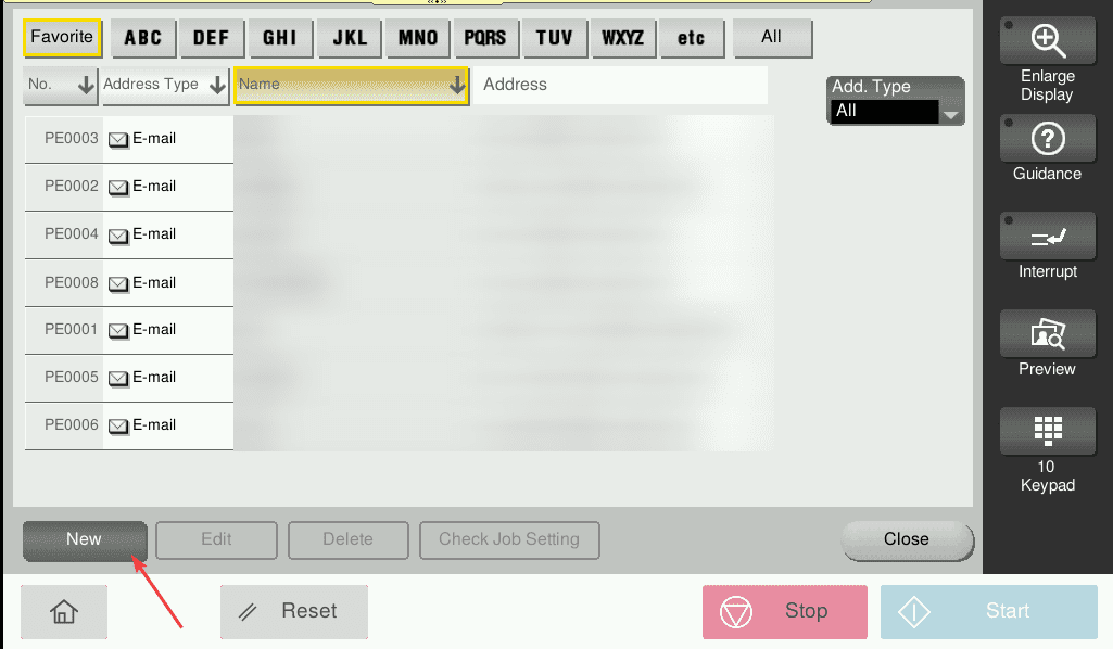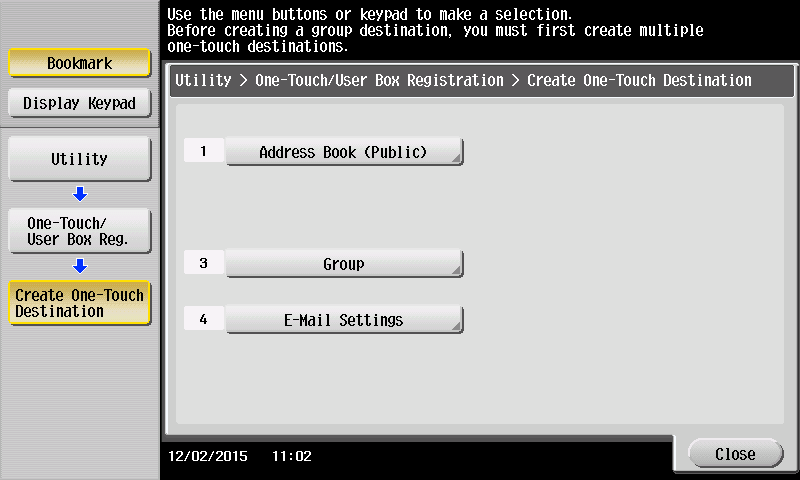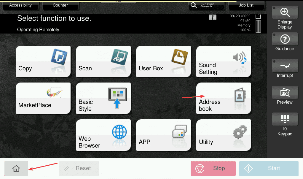 4. If you don’t have an “Address book” button on the home screen of your copier, you can follow the steps below: