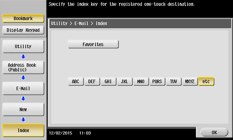 4h. When you select the index you will see the screen below. If you would like your one-touch to appear on the front scan screen, select FAVORITES and select an index button. Press OK.