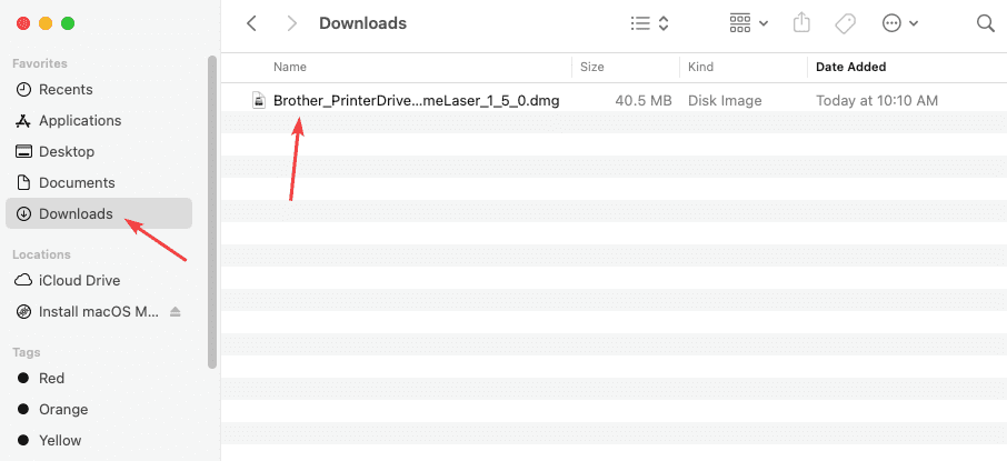 5. Open the “Finder” application and navigate to the “Downloads” folder. Find the Brother file and double-click to open it. You will get another window open with a new file, double click the file to run the application.