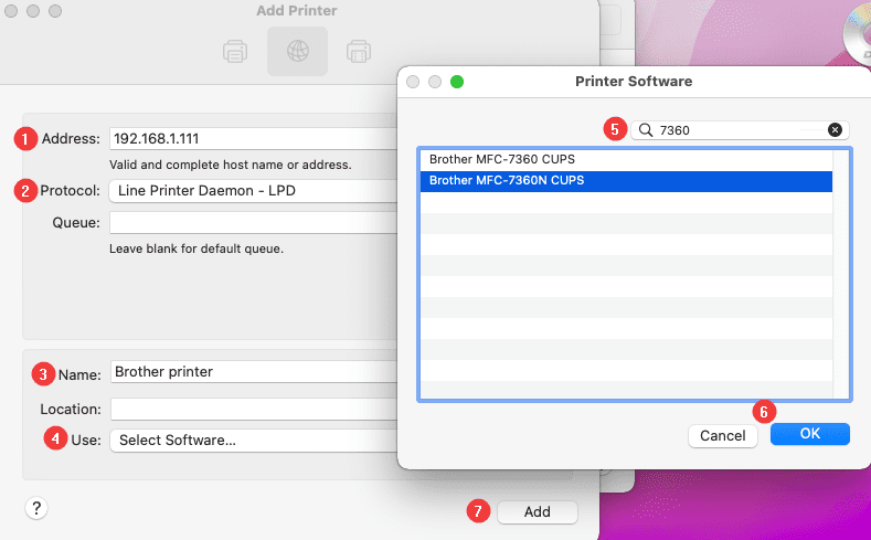10b. Drop the “Protocol” down to “Line Printer Daemon -LPD”.