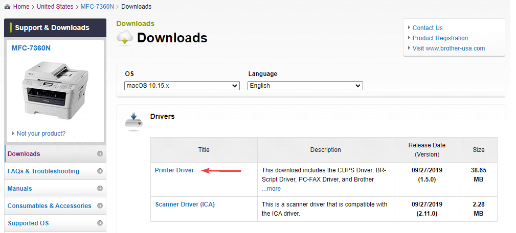 5. Click the “Print Driver” link under the “Drivers section and then click the “Agree to EULA and download” button.