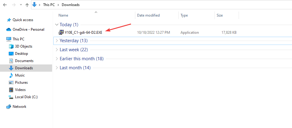 19. If you have a column on the left, click “This PC”, otherwise click the green up arrow until you get to “This PC” in the dropdown menu at the bottom, and then open the downloads folder.