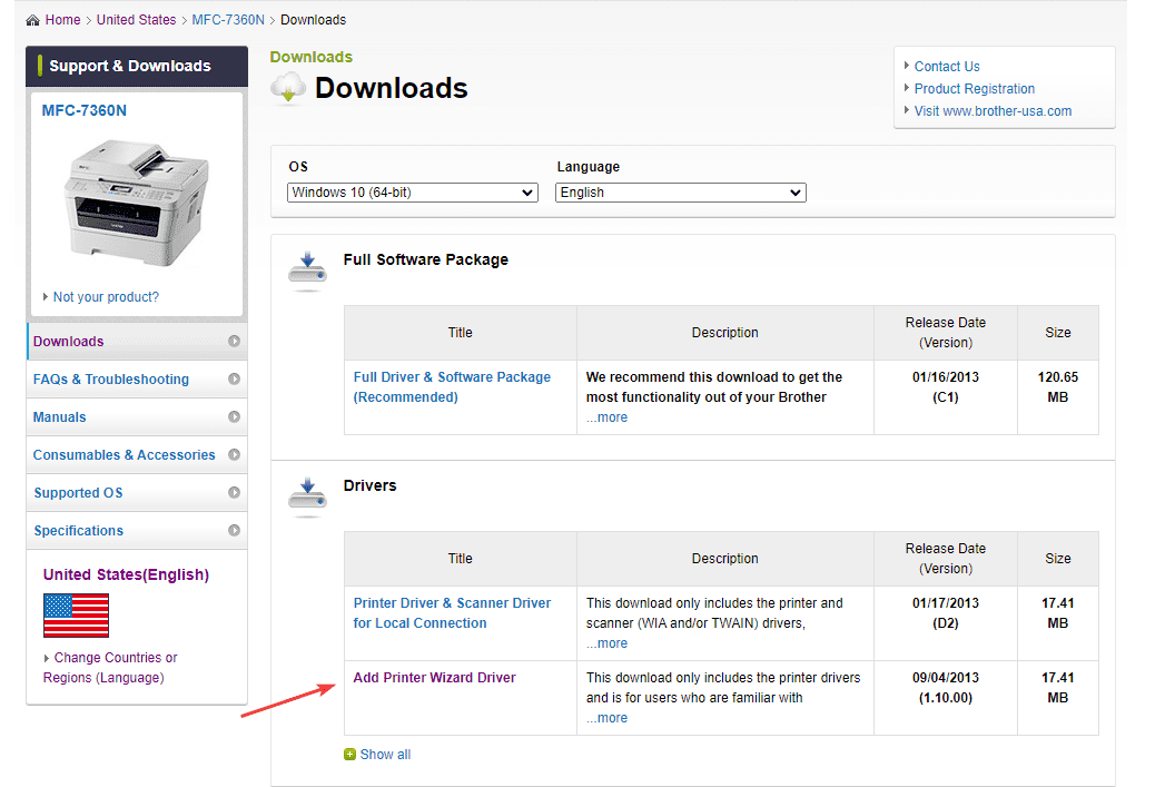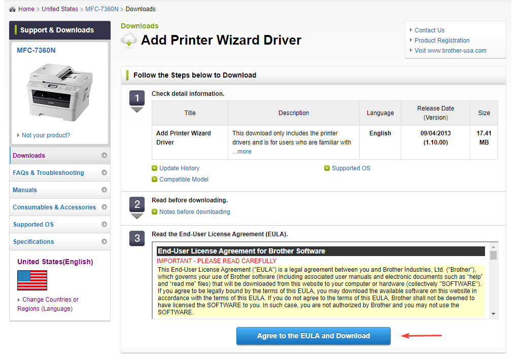 5. Under “Drivers” click the “Add Printer Wizard Driver” link, then click the “Agree to the EULA and download” button. After the file downloads, you can close or minimize the browser.