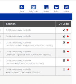 4. Check the boxes on the right for the machines you would like to print codes for, and then click”QR Codes” at the top.