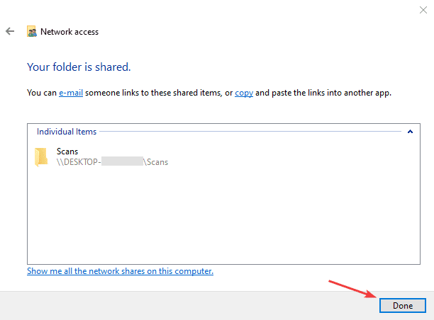 6. Click “Done” to finish the file sharing.