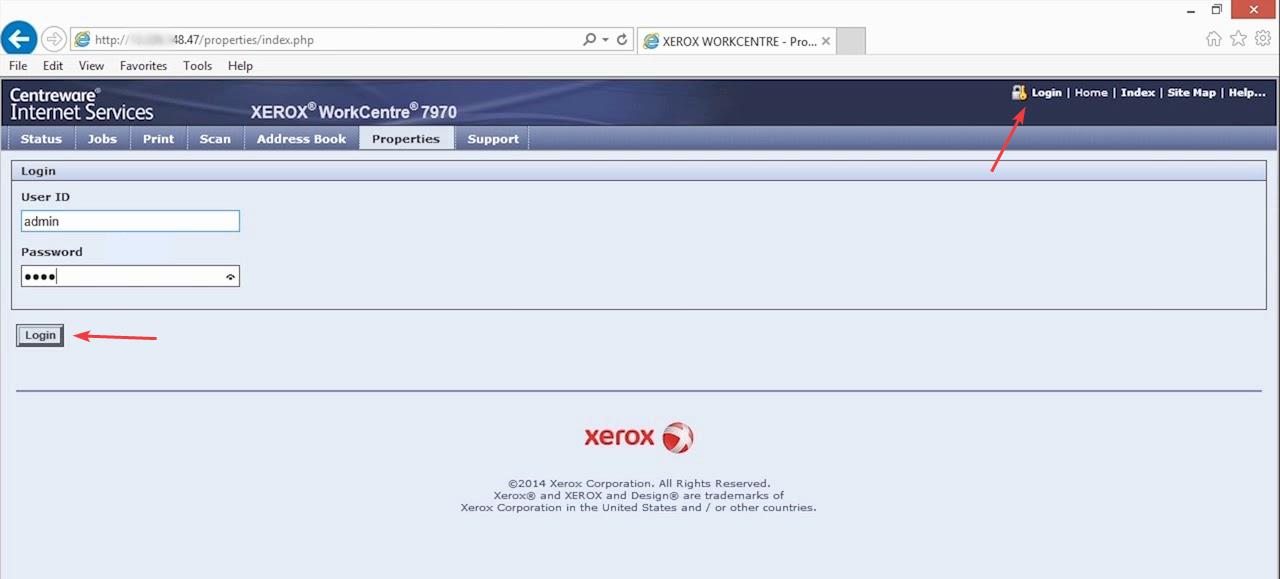 3a. The default login is “admin” for the username and “1111” for the password. On some models, you may need to use the serial number for the password, which can be located on the back of the copier.