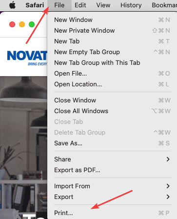 2. Click “File” at the top of the screen and then click the “Print” option.