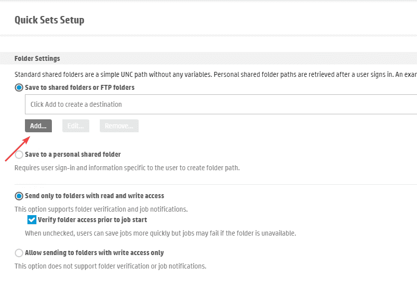 12. Click “Add” under “Folder Settings”. You can keep the other settings on this screen defaulted.