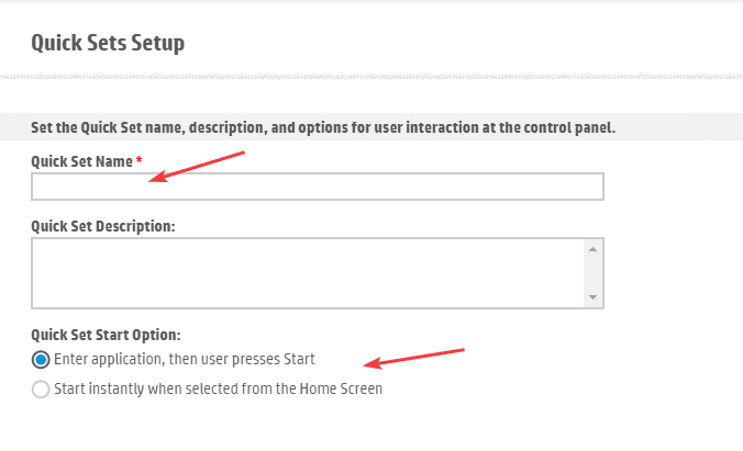 14. Give the Quick Set a name. At the bottom, the top bubble will allow you to make changes to settings before scanning the document. The second option will start the scan as soon as you select your quickset. Once you have finished, click “Next”.