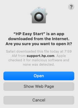 4. Find the download section in the dock at the bottom of the screen and expand it and click the “HP Easy Start” to open it.