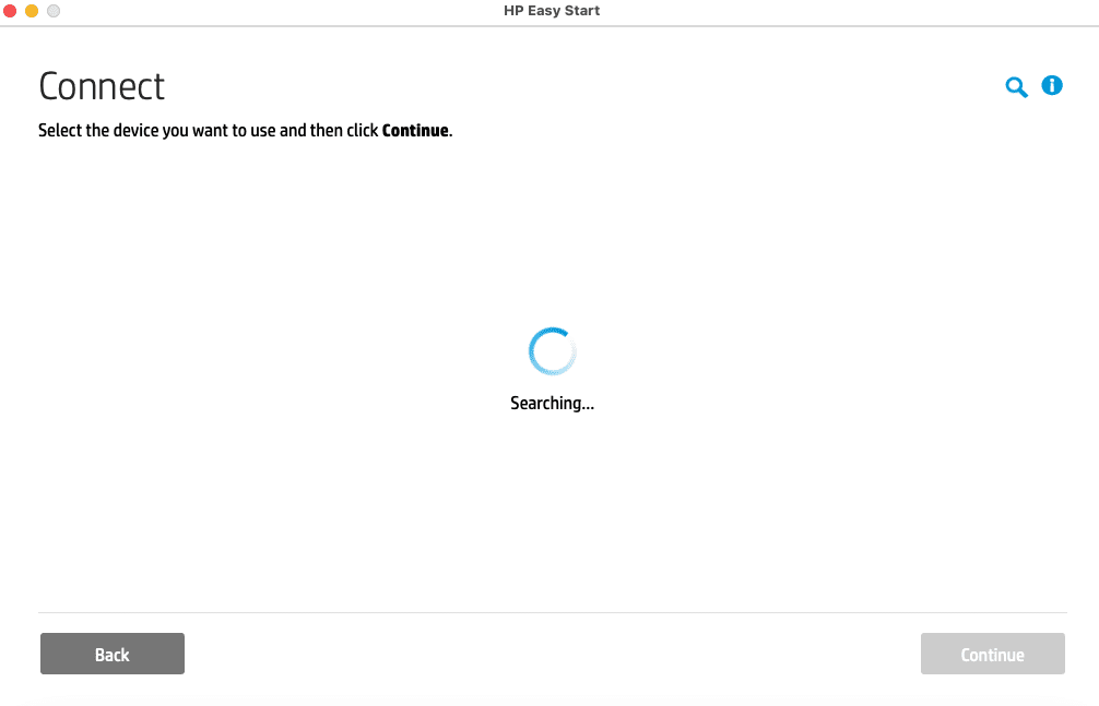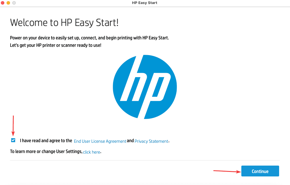 6. Agree to the end user license and then click “Continue”. On the next screen click “Continue” to search for the copier.