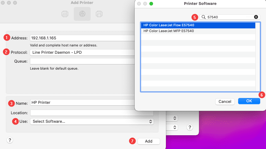 13b. Drop the “Protocol” down to “Line Printer Daemon -LPD”.