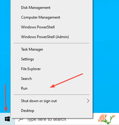 1. Right-click the “Windows” icon at the bottom of the screen and click the “Run” option.