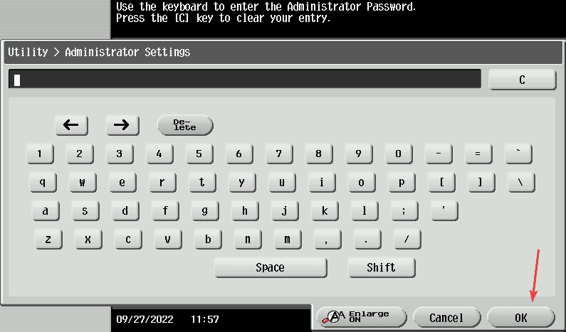 2. Press the “Administrator” option, input the password and then press “OK”.