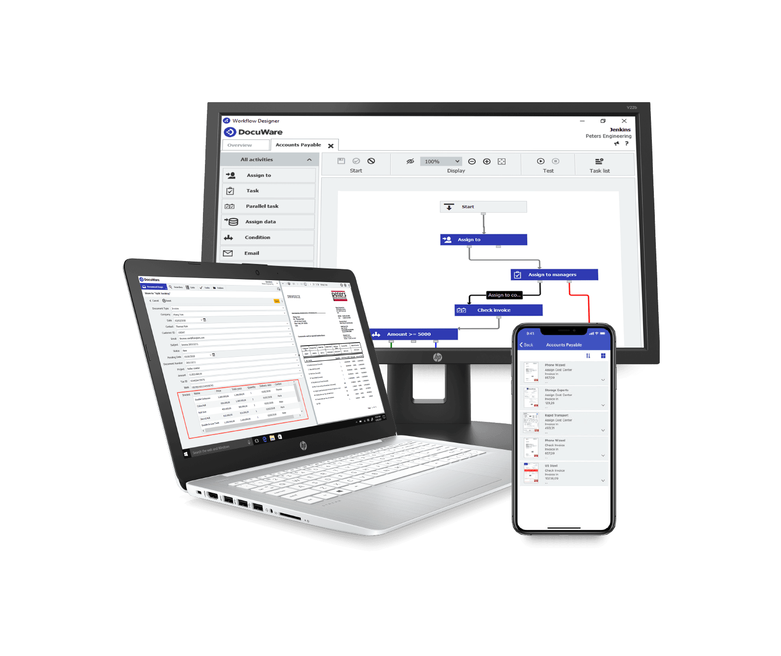 • Invoice Processing: DocuWare’s powerful automated workflow processes incoming invoices, effectively reducing errors and improving efficiency. In many instances, companies reported the ability to restructure their accounting teams after implementing DocuWare, reducing headcount without compromising on work quality and output.